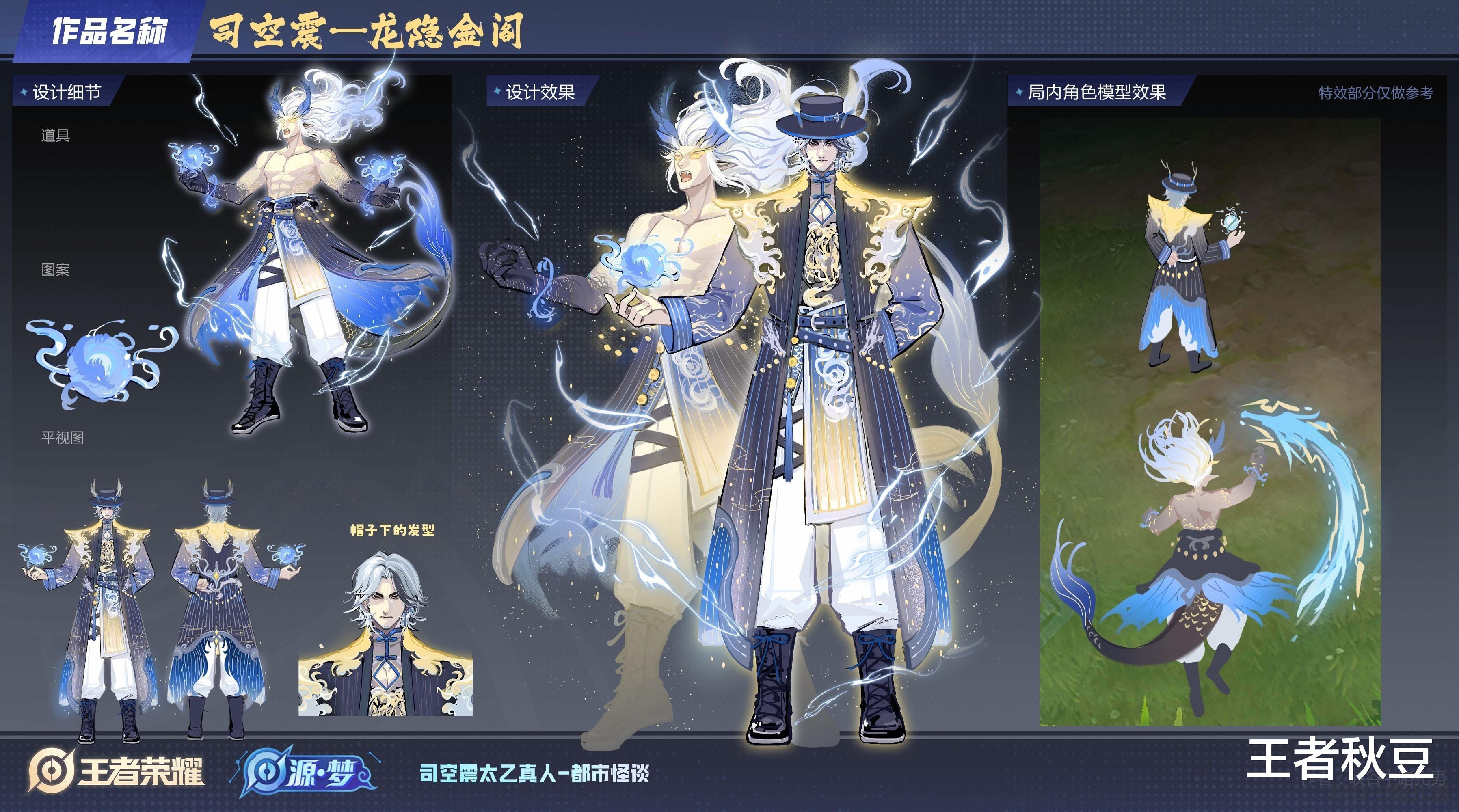 这款作品是把司空震设计成一位古董店老板,但是实际是一条活了上千年的龙,因此变身后就会成为像敖光的龙战士。技能特效也是和龙有关,假如是龙年的话,那么这款皮肤应该很受欢迎。
