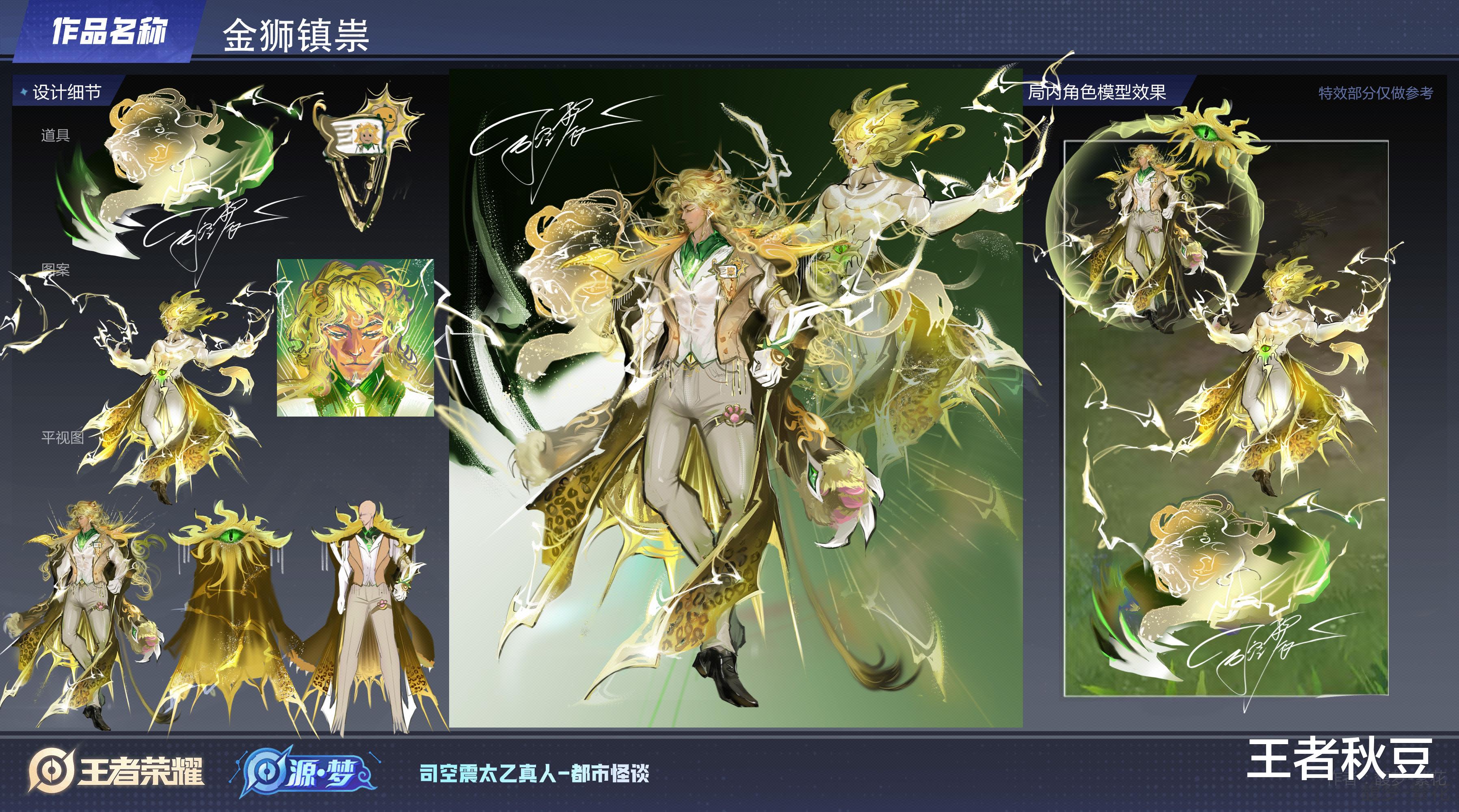 这款作品的主题是动物园园长,整体以金色为主,平时是温和喂鸽逗童的园长,但是体力封印着狮子吧,变身后会爆体变成金色的雷霆之王。变身前比较有特色,变身后的狮子元素比较少,和年限有点像。