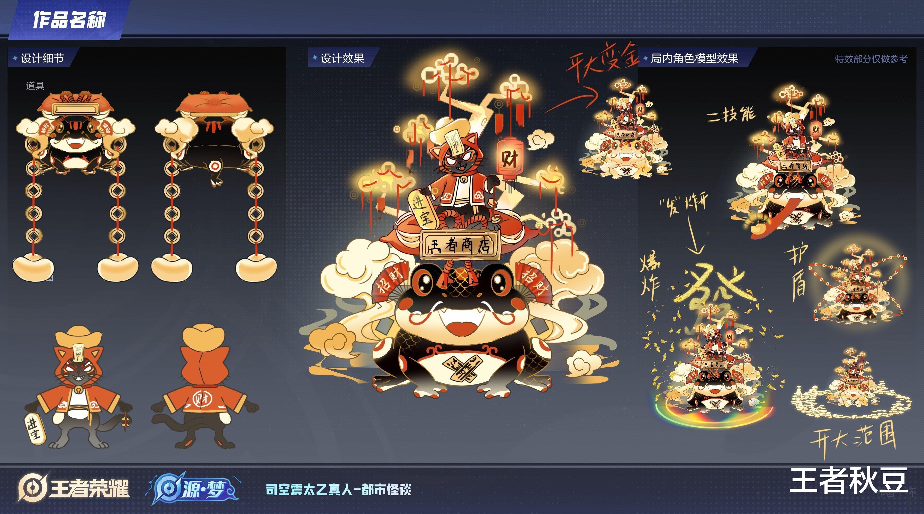 猫星人的最爱来了,太乙真人变成一只可爱的猫咪鬼在夜间游荡,然后炉子变成了一个王者是个难点。元宝、铜钱、金树等设定都非常的喜庆,搭配红色俏皮的猫咪形象,可以俘获很多喜爱。