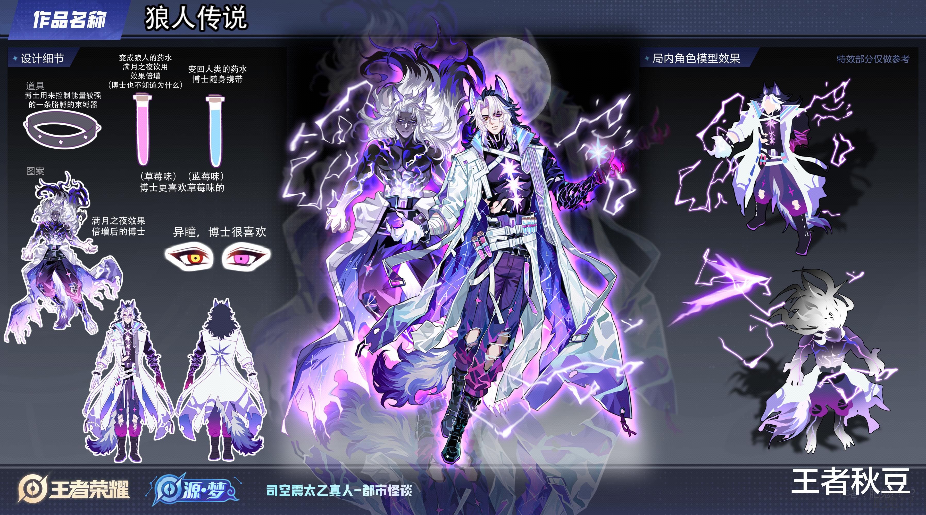 这款作品的画风非常好,有许多的细节设计。主题是司空震变成一个科学家,想成为城市的守护者。然后发明了一种狼基因的药水,喝了药水后司空震就变成了狼人守护城市。紫色的雷霆技能特效应该也很好看。