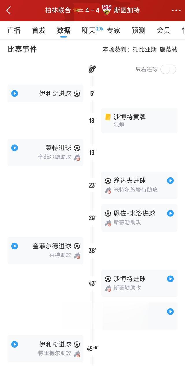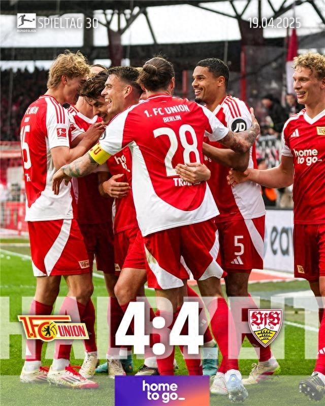 😱疯狂进球大战!德甲赛场半场8粒进球,柏林联合暂4-4斯图加特