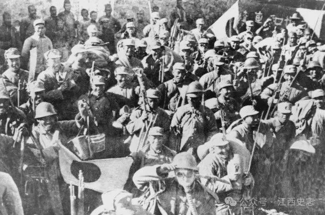 ▲平型关大捷后,八路军第115师指战员背着缴获的武器、物资凯旋。