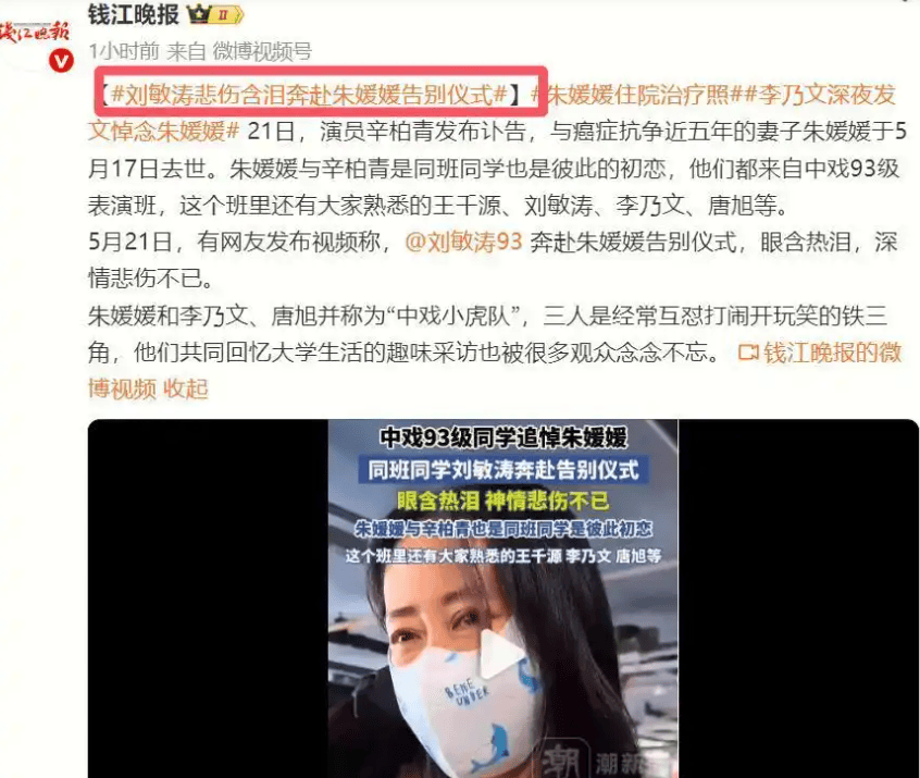 5月21日下午,朱媛媛的告别仪式在北京低调举行。中戏93级的老同学们陆续到场,有人发现刘敏涛的微博头像悄悄换成了白蜡烛,还把自己账号名改成了“刘敏涛93”。