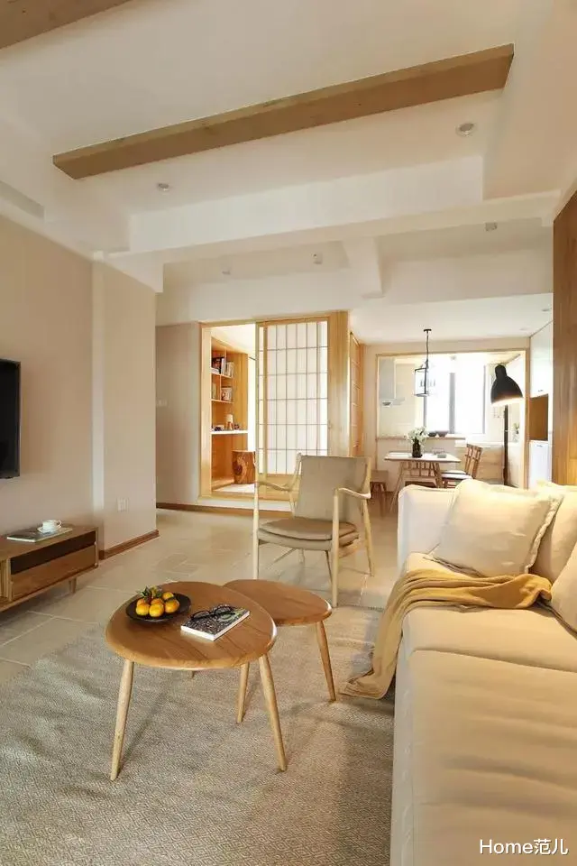 柔软舒适的布艺沙发搭配轻巧的双拼茶几,让人感受到家的温馨与惬意。