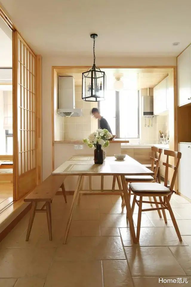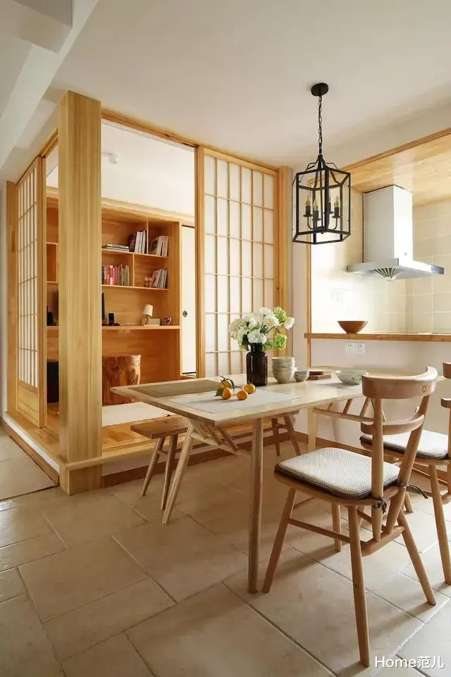 餐厅的家具以轻巧的木质餐桌椅为主,自然大方,透露出日式简约风格的独特魅力。
