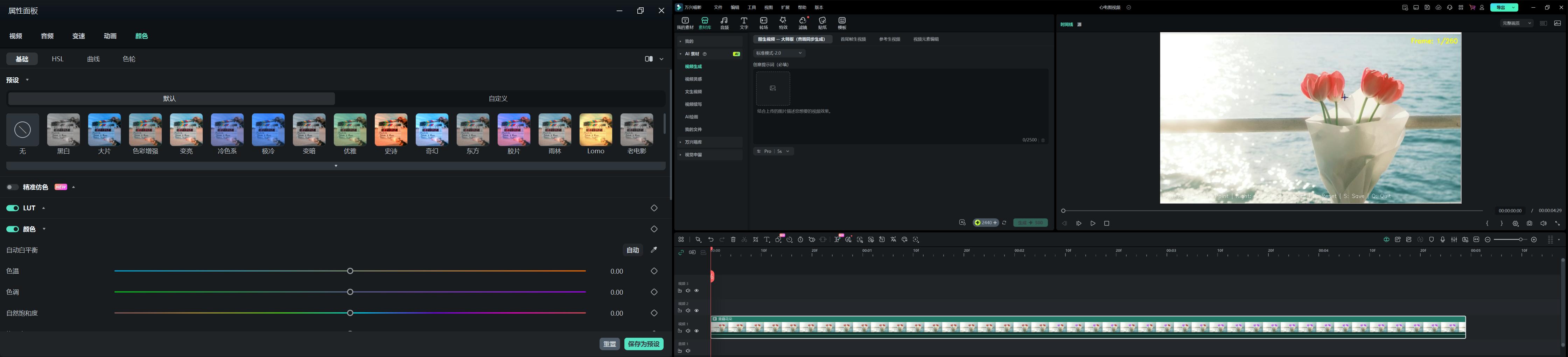 基础编辑强大:具备丰富的滤镜、特效、变速功能,易于上手。