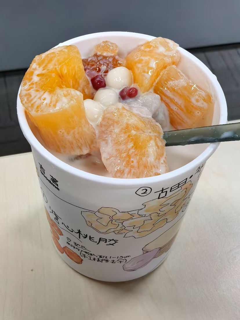 古茗的木薯桃胶炖奶同样凭借地域风味成功出圈。该饮品选用湖北溏心桃胶、广西防城港黄心木薯、福建古田银耳等优质原料,经60分钟以上慢炖熬煮,再搭配黑糖珍珠、小丸子和鲜奶,打造出“糯、弹、韧”等多重咀嚼感。值得一提的是,该饮品一经推出便迅速登顶品牌销量冠军,小红书相关话题上线数日内浏览量便突破700万次。