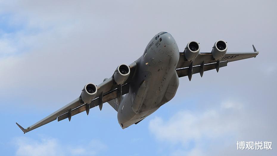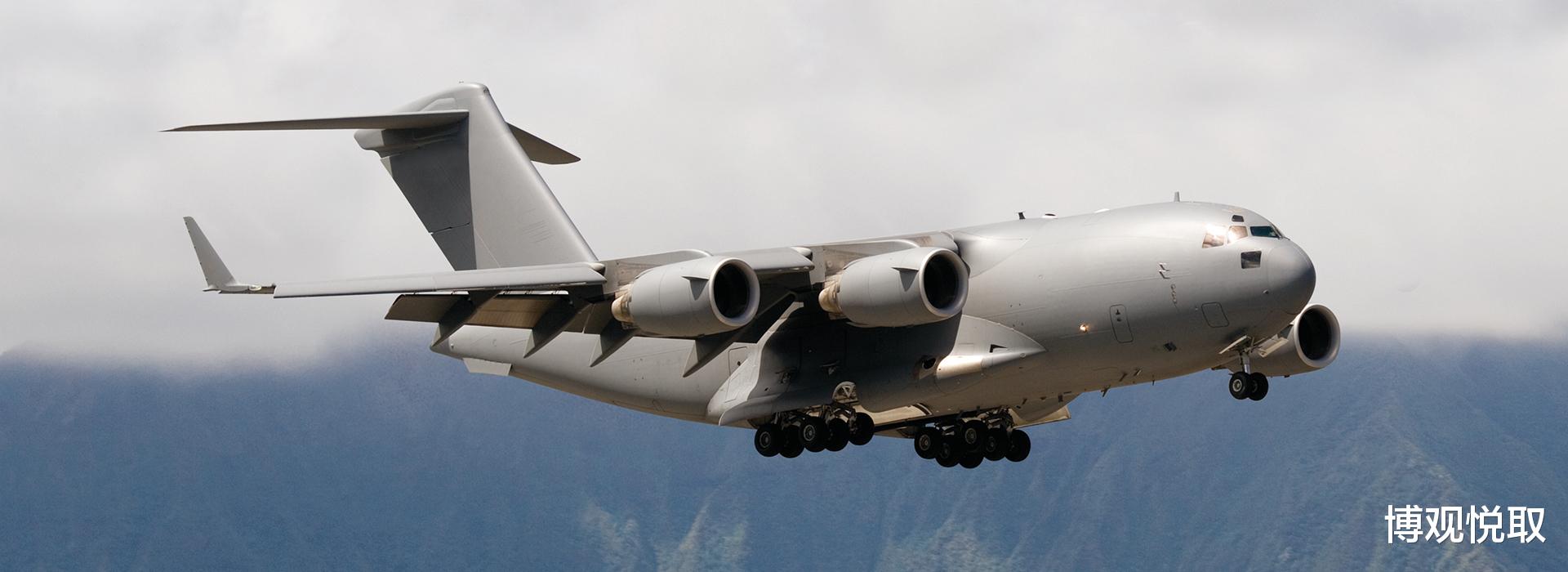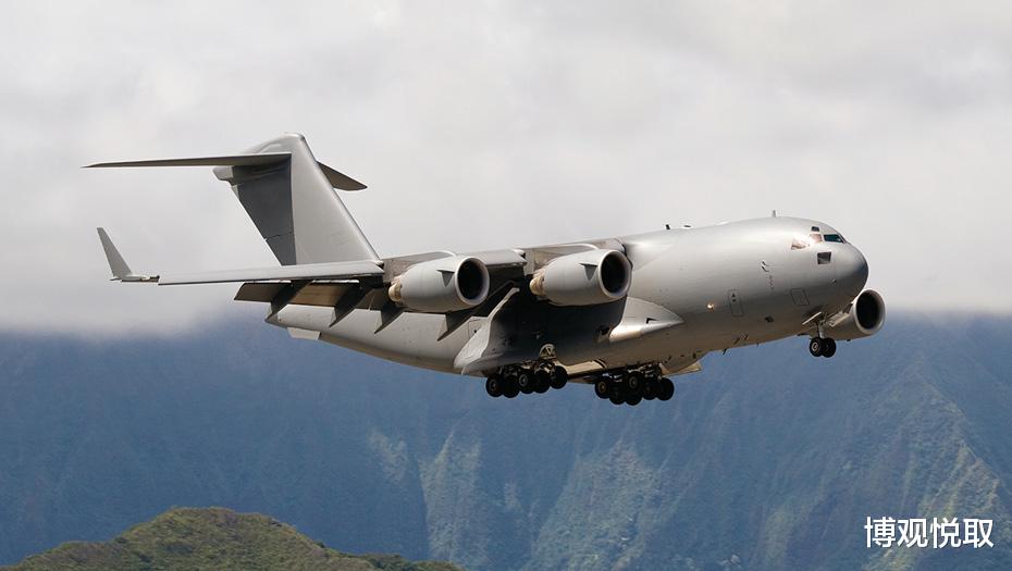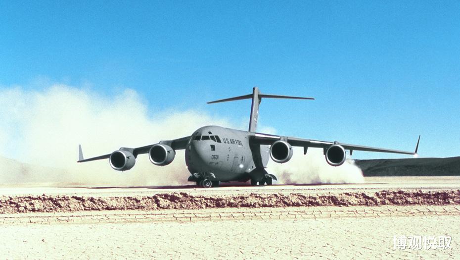 C-17采用悬臂上单翼设计,前缘后掠25度,搭配NASA研发的翼梢小翼(高2.9米),大幅提升低速升力。更关键的是其短距起降能力:通过4台普惠F117-PW-100涡扇发动机(单台推力40440磅)的反向推力,配合液压可收放前三点起落架(前起落架双轮、主起落架6轮),C-17能在915米长的未铺装跑道上着陆——全球符合这一条件的机场超万个,远超C-5等大型运输机。2010年海地地震救援中,C-17曾在仅800米长的受损跑道上成功起降,直接向灾区投送救援物资。