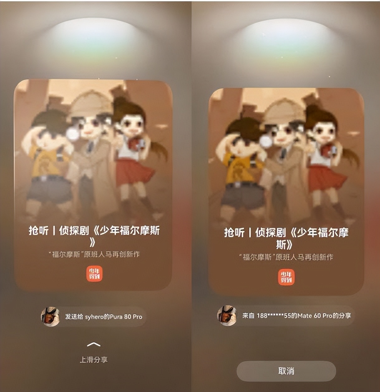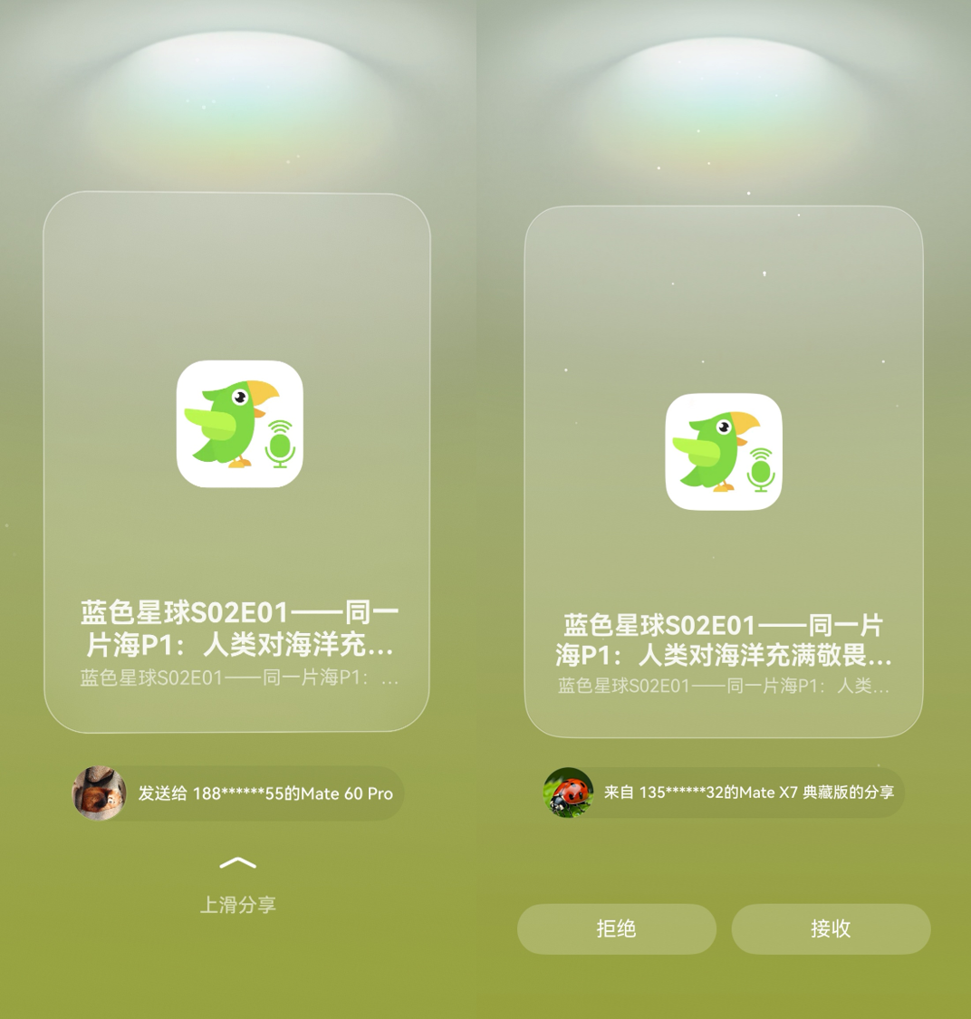 我家孩子还喜欢和隔壁小朋友一起用鸿蒙版英语趣配音练英语,两个小孩子特别喜欢用“碰一碰”直接分享课程、卡片等学习内容,毕竟是孩子嘛,有人互动着一起学就更容易产生学习兴趣。