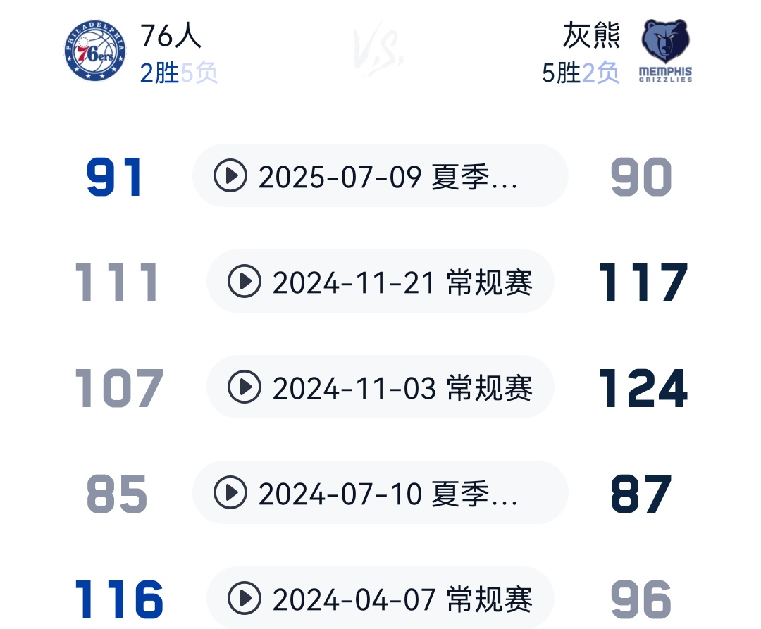 两队近7次交锋中,主队灰熊5胜2负占据优势。除去夏季联赛,24年的4场对阵,灰熊取得3场胜利。单从这一点来看,灰熊是有一定心理优势的。