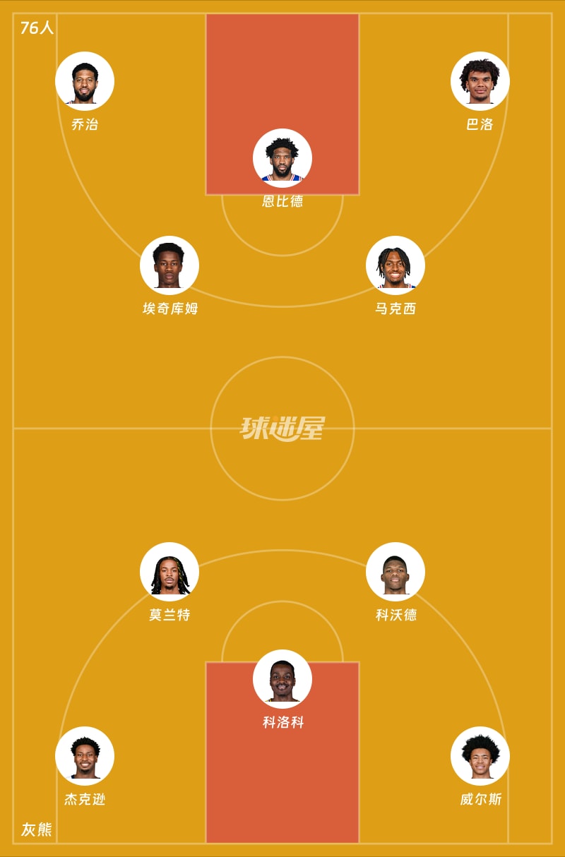 值得一提的是,灰熊的小皮蓬、波普、艾迪、康查尔并没有出现在本场比赛的大名单中。76人赛前出战成疑的恩比德本场首发。