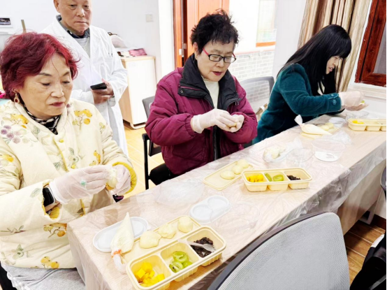 现场气氛活跃,大家互相交流着手法技巧,“你这个皮擀得真圆!”“你包的馅料好足呀!”的称赞声不绝于耳。一双双巧手上下翻飞,不一会儿,一个个圆润可爱、白胖胖的糯米糍便整齐地排列在盘中,宛如一件件艺术品。对于许多年长的居民而言,这不仅是学习一门新手艺,更是一次愉悦的手脑协调锻炼。整个制作过程,欢声笑语与香甜气息交织弥漫,邻里间的距离在协作与分享中被悄然拉近,冬日的寒意在此刻被社区的温暖彻底驱散。