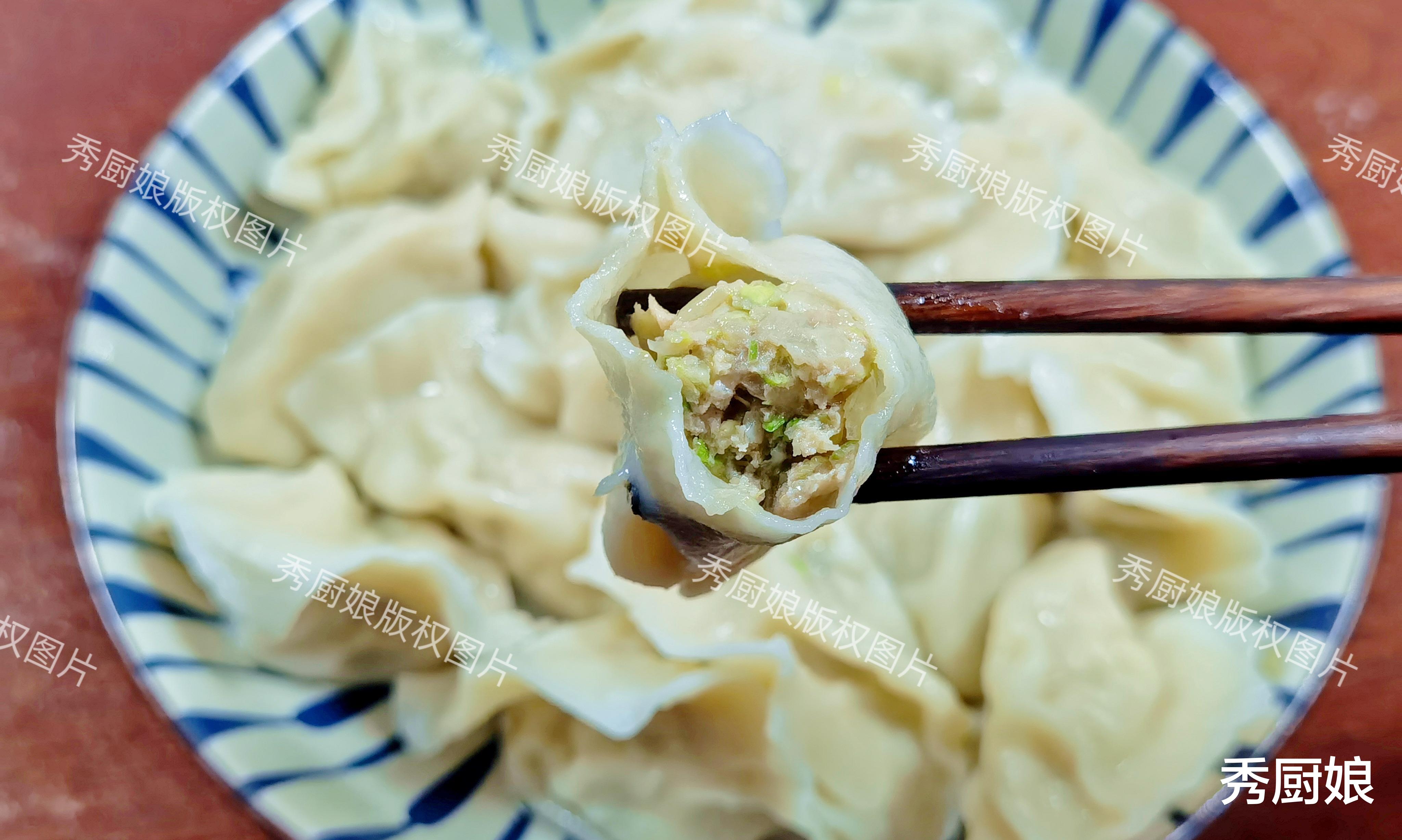 3. 包饺子:取一张饺子皮,放入适量馅料,对折捏紧封口,依次包好所有饺子。锅中烧开水,放入饺子,煮至饺子浮起,再加两次冷水,煮熟后即可捞出享用。
