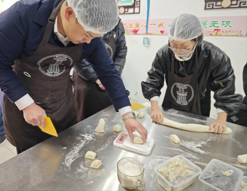 暖意洋洋的元想焙家烘焙坊里,元想焙家项目工作人员向元和商会会员们细致入微地讲解了蟹壳黄的制作步骤并操作示范,动员大家一起大显身手。大家分工明确,有的和面、有的称重、有的分割擀制、有的包陷收口,齐心协力共同制作出100份蟹壳黄,精心打包,送到了辖区高龄老人和困境人群手中,走访过程中的声声关怀和问候让老人们感受到了寒冬的温暖。