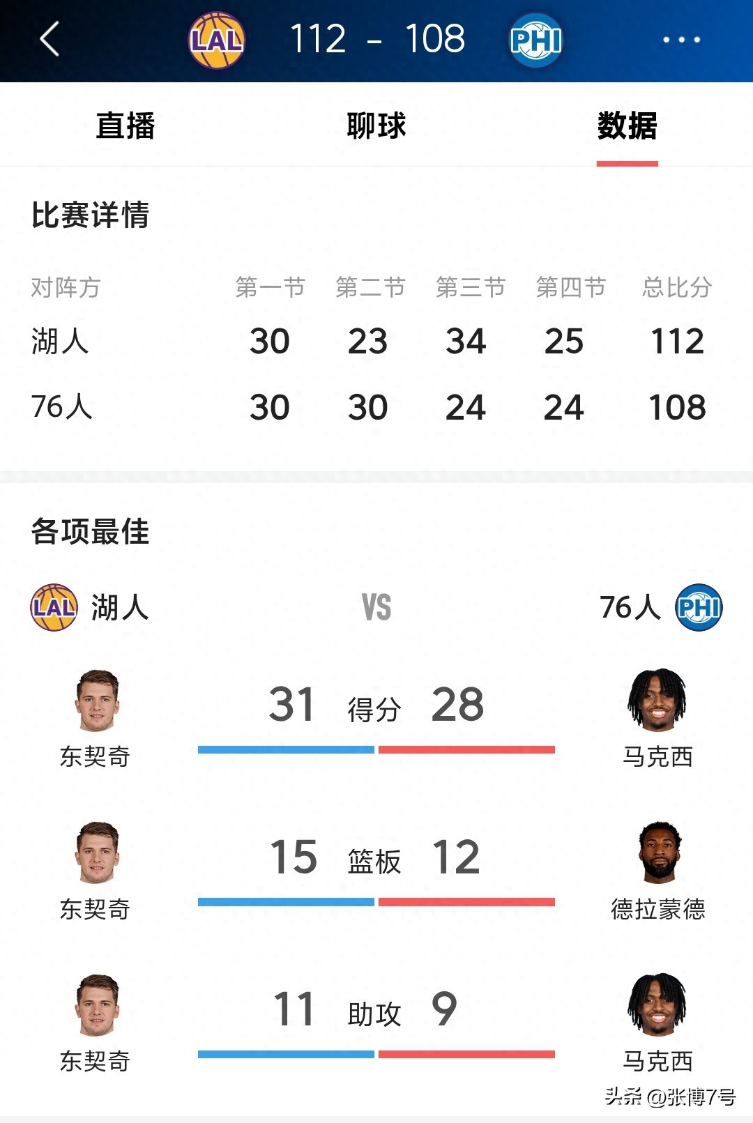 北京时间2025.12.08,2024~25赛季NBA常规赛,湖人112—108击败76人。
