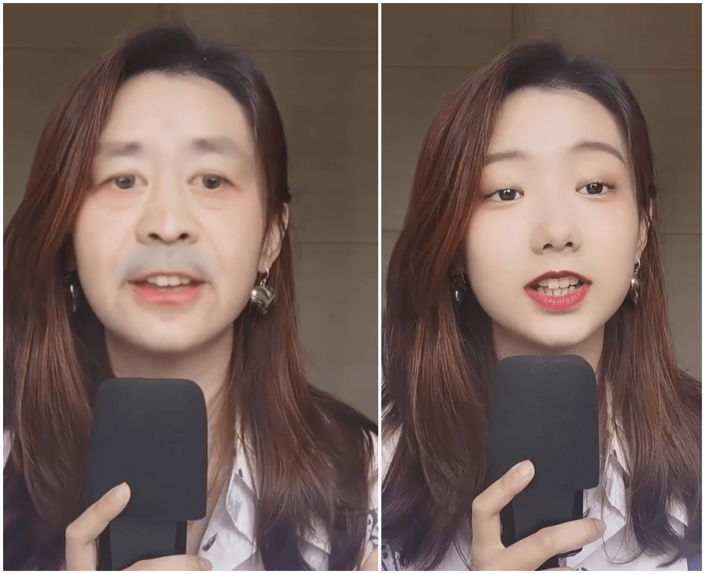 不过,目前技术已成熟,常见的诈骗套路有直播换脸、视频换脸等,配合AI换声让人防不胜防;此技术不仅可以换相仿脸型,甚至不同脸型也可以换,配合各种软件的瘦脸瘦身甚至换装,让人真假难辨!