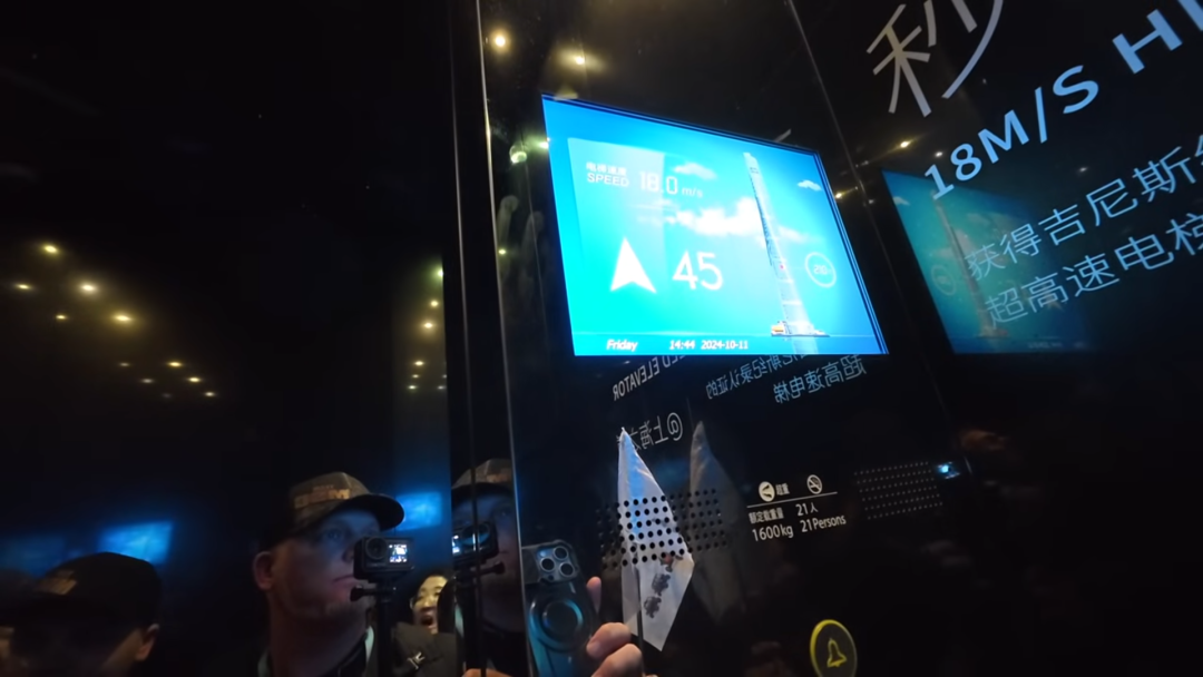 最后,他们来到了上海中心大厦,体验了世界上最快的电梯,一秒钟可以爬18米,电梯里的所有同行都沉默了。
