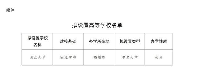 7月17日,福建省教育厅发布《关于高等学校设置事项的公示》:闽江学院更名为闽江大学。