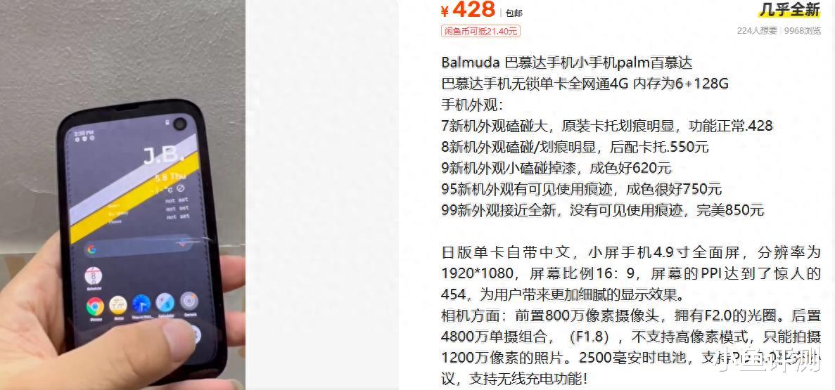 最近在二手鱼里瞎逛,突然刷到一个稀罕物,日本巴慕达出的手机,你猜多少钱?428块!巴慕达这牌子不是做那种几千块的电风扇和空气炸锅的吗?怎么还出过手机?这价格,简直就是把日本洋垃圾按在地上摩擦啊。