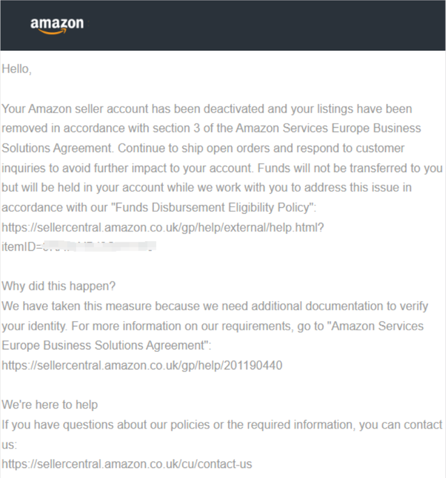 AMZ123获悉,5月3日,大量卖家收到了亚马逊的账户停用邮件。亚马逊在邮件中指出,根据《亚马逊商业解决方案协议》第3条,这些卖家账号违反了亚马逊的政策,因此被停用。