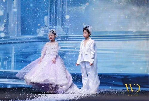 毛梓宸和毛紫羚兄妹俩作为品牌的主秀模特,不仅完美诠释了礼服的每一个细节与亮点,更通过自己的气质与表现力,将服装背后的故事与情感传递给在场的每一个人。他们每一次华丽的转身、每一个天真的微笑都充满着自信与活力,并赢得了现场观众一致的阵阵掌声与喝彩。