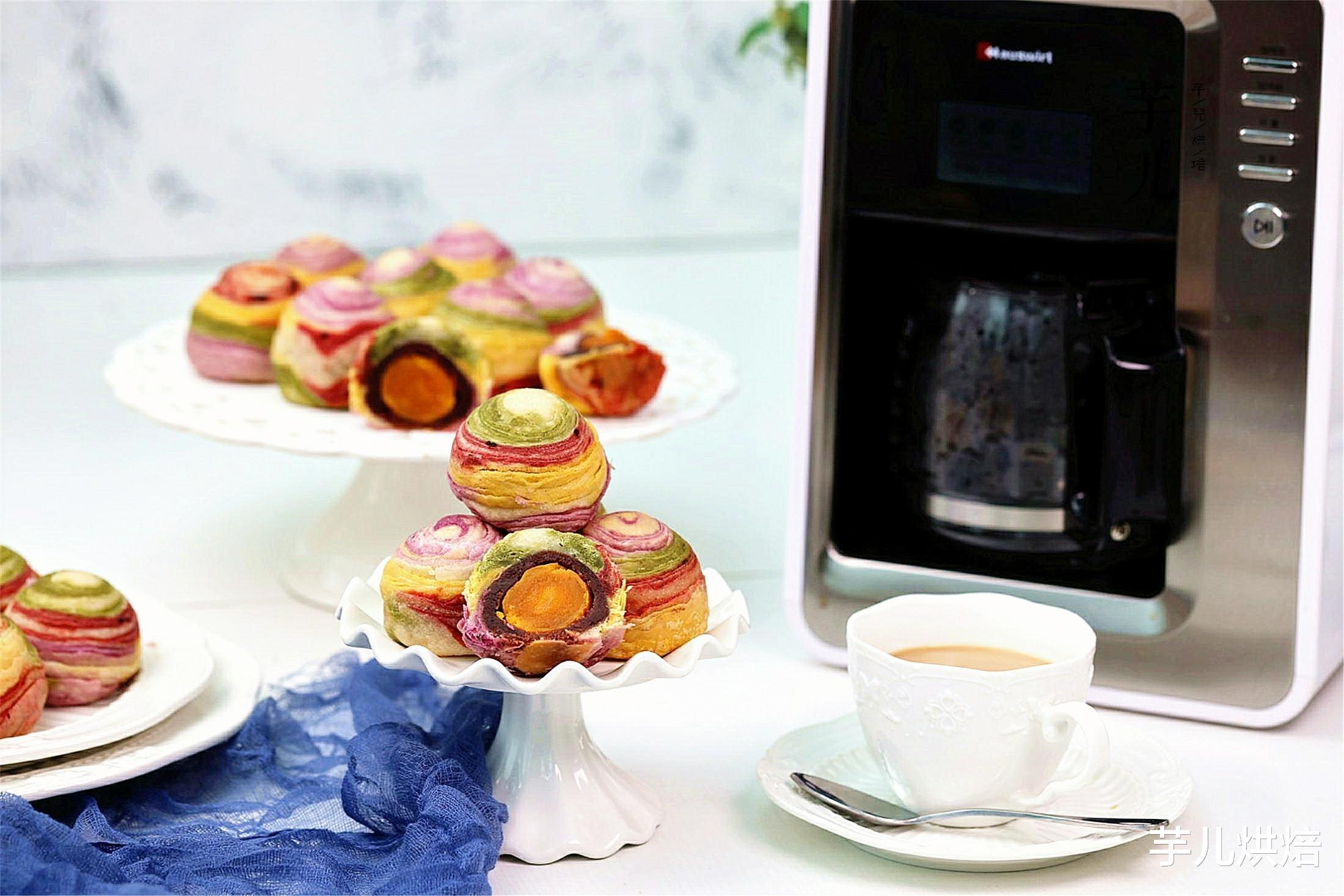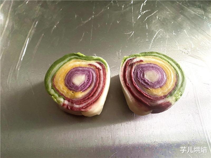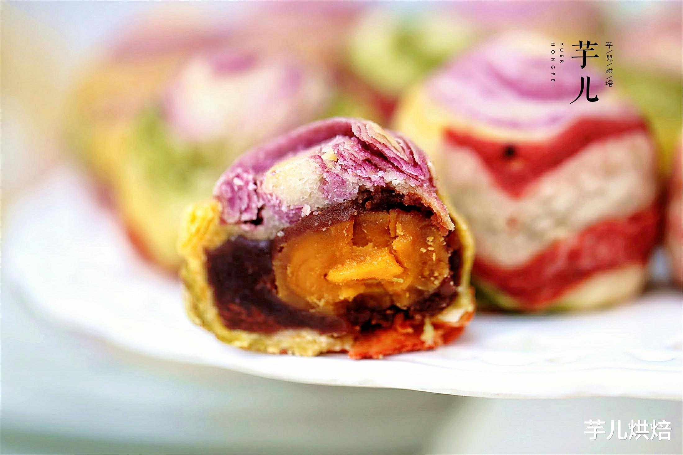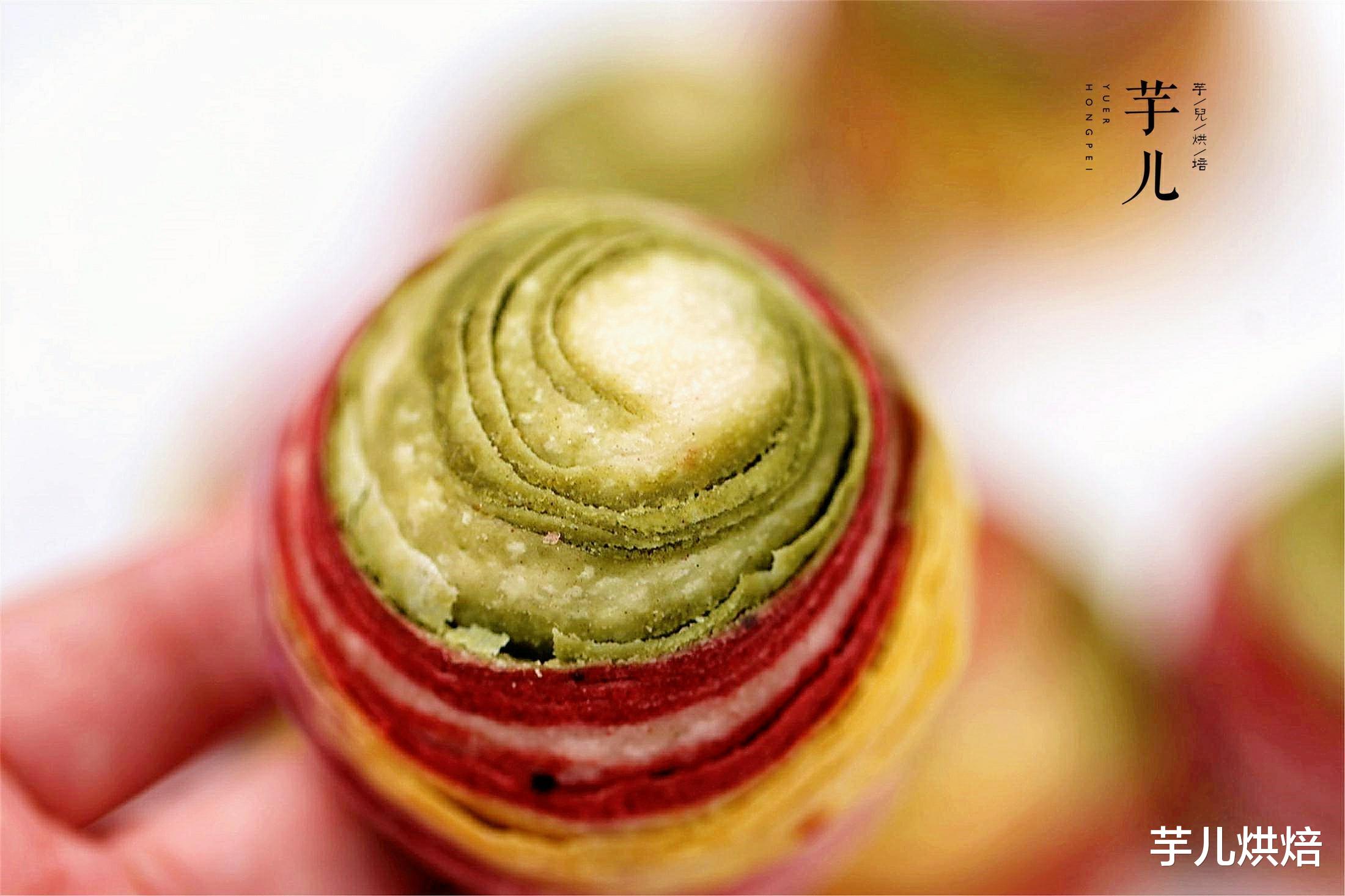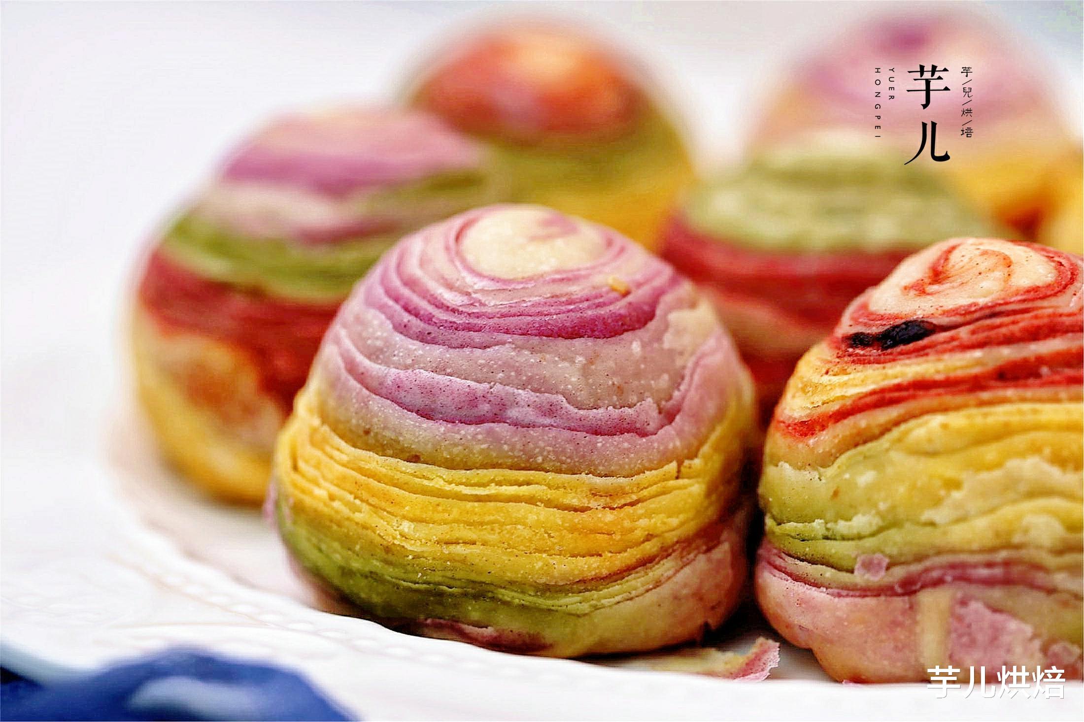 今天就给大家分享一款“彩色蛋黄酥”,这款蛋黄酥和传统的蛋黄酥不太一样,自带它独有的特色,拥有独一无二的风格,彩虹色的渐变酥皮,一层层环绕的五彩斑斓,化成了螺旋般的彩虹,一眼看到就觉得心情也像彩虹一样美丽了。一颗彩色蛋黄酥带给你是不仅仅只是味蕾上的满足,更是视觉上的极大享受!