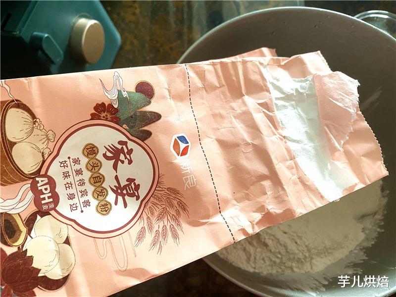 1.油皮材料放入厨师机桶里,混合均匀。安装到厨师机上,先低速搅打,再转中速搅打。(没有厨师机直接手揉也行)。揉打至可以撑出手套膜。揉好的油皮面团取出,盖保鲜膜醒发30分钟。