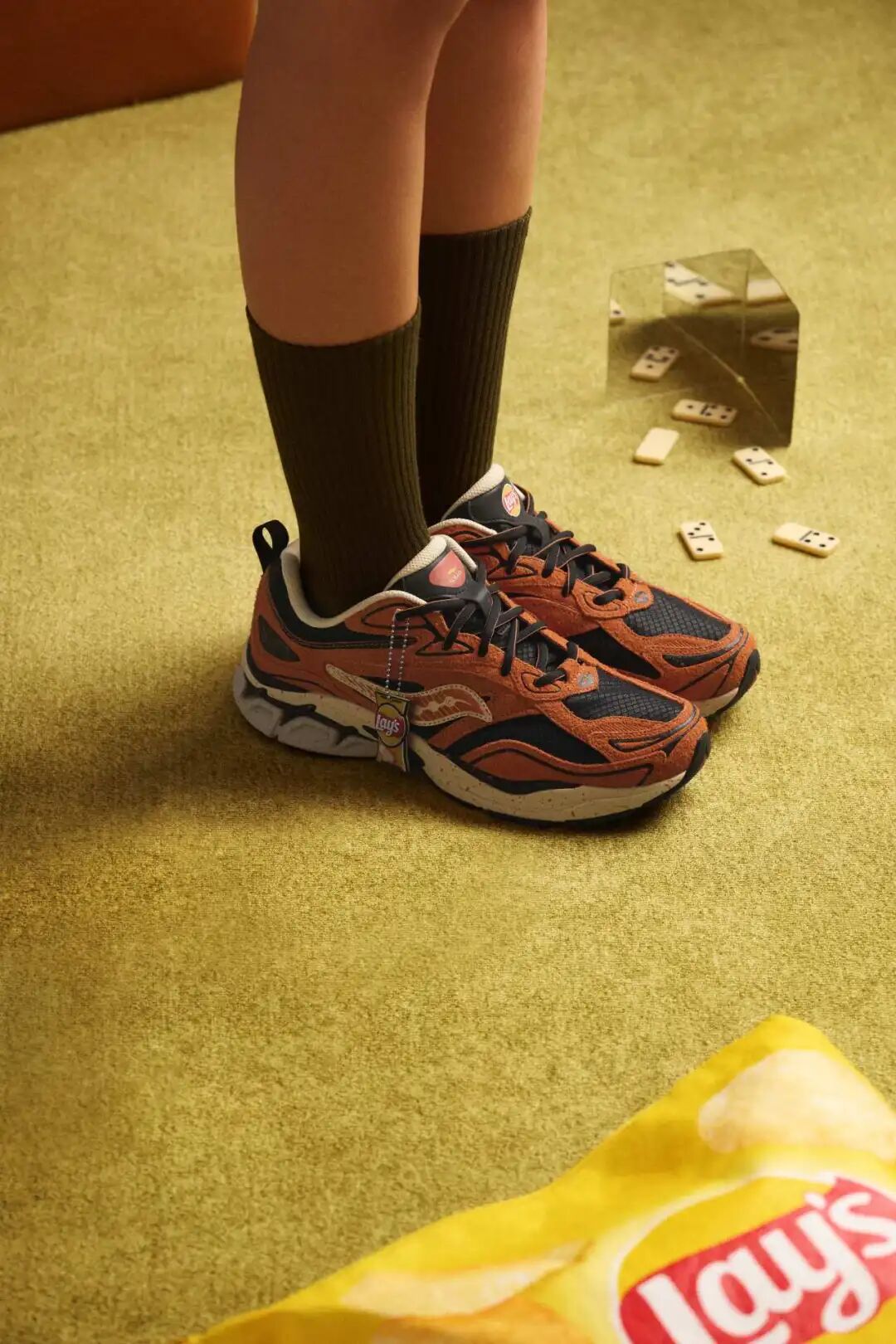 Saucony 索康尼携手乐事推出跨界联名系列,将“味觉记忆”转化为可穿着的视觉语言。 双方以 Saucony 经典复古鞋型为基础,将乐事原味、香辣小龙虾味、海苔味薯片的包装色彩与趣味元素融入 Trainer 80X、Grid Fusion、Cohesion 2K PRM 三款新品中。