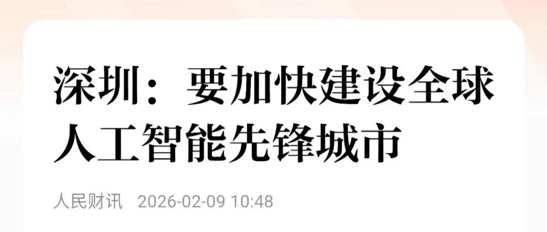 今年两会期间,深圳将“抢占人工智能产业科技制高点”写进政府工作报告,并提出要加快建设全球人工智能先锋城市,助力2030年GDP总量破5万亿,2035年城市综合竞争力全球领先。
