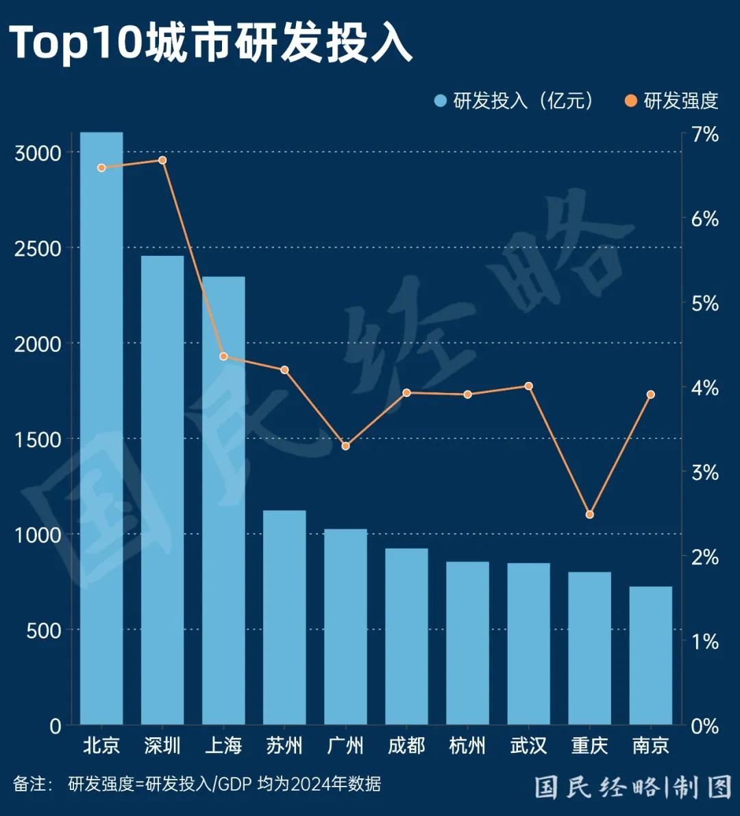 2024年,深圳创新强度(研发投入/GDP)达到6.67%,历史性赶超北京,跻身全国城市首位。