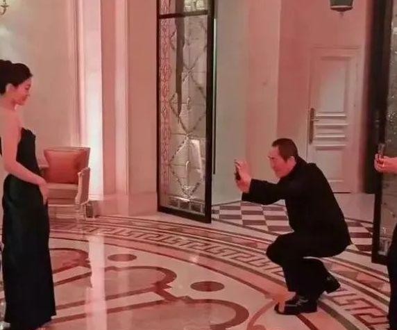 但她自信从容的姿态,与张艺谋并肩而立,丝毫不显逊色。