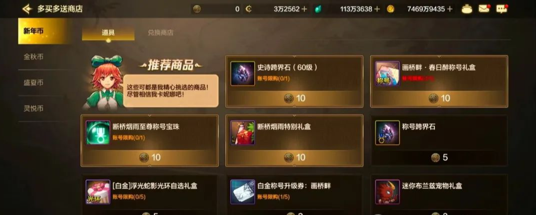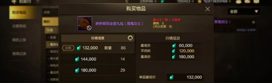 然后这个时候就可以蹲点抢低价春节套,比如你是想要双至尊的玩家,能多抢就多抢,最好是抢购5套,后面的价格高点没事,同时自己在用RMB购买5套,这样手里就一共有10套。