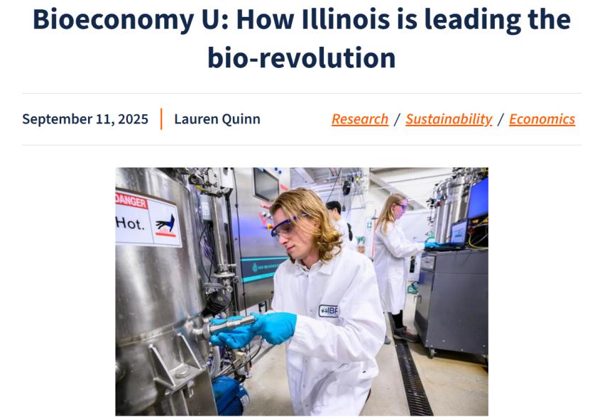 作为全美第一大豆与第二玉米产地,伊利诺伊州拥有得天独厚的农业资源与专业知识,为生物经济提供了丰富的原料,可用于开发可持续航空燃料、生物塑料、工业化学品和纺织品等高价值产品。