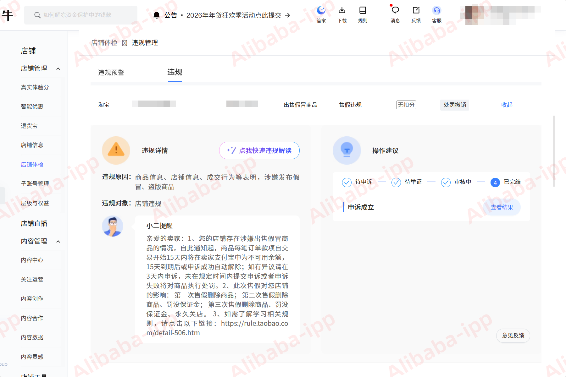 突如其来的“红色警报”深夜,李女士的电脑屏幕突然弹出淘宝平台的通知:她刚上架的“曼妮芬”品牌内衣链接,因“商品信息、店铺信息、成交行为等表明,涉嫌发布假冒、盗版商品”被平台处以信息层面排查处罚。商品刚上架,零销量、零评价,甚至连产品详情页都还没来得及完善。李女士瞬间心头一紧,这意味着链接将被删除,店铺权重将受沉重打击,后续营销活动也可能无法报名。