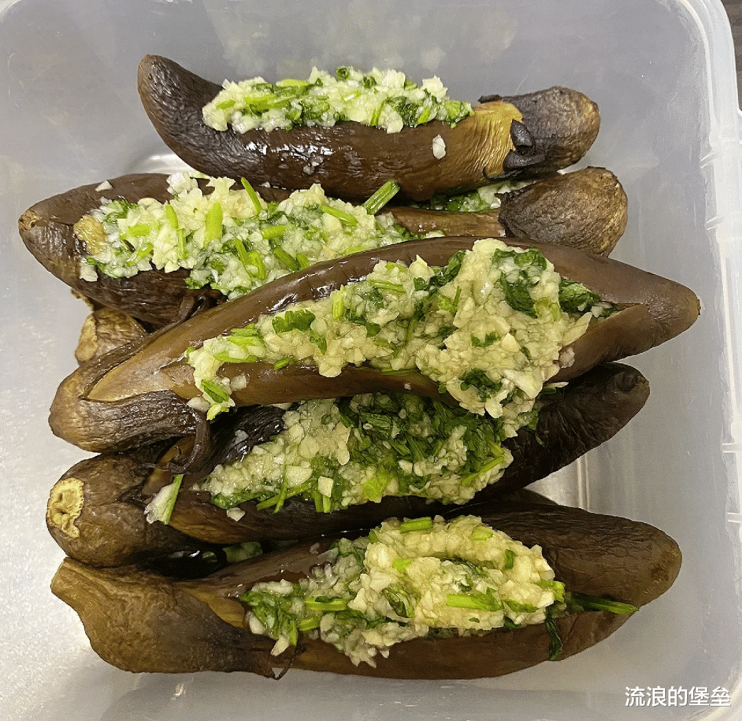 第一个就是蒜茄子,小时候爱吃蒜茄子,蒜味浓郁加上茄子的软烂还挺好吃的,但是现在会做的少了,要是谁从家里拿一点出来,瞬间就被哄抢,小时候我们家作的蒜茄子,还放辣椒油这些,辣乎乎的蒜味茄子,老香了,不知道大家吃没吃过烀茄子蘸蒜泥!