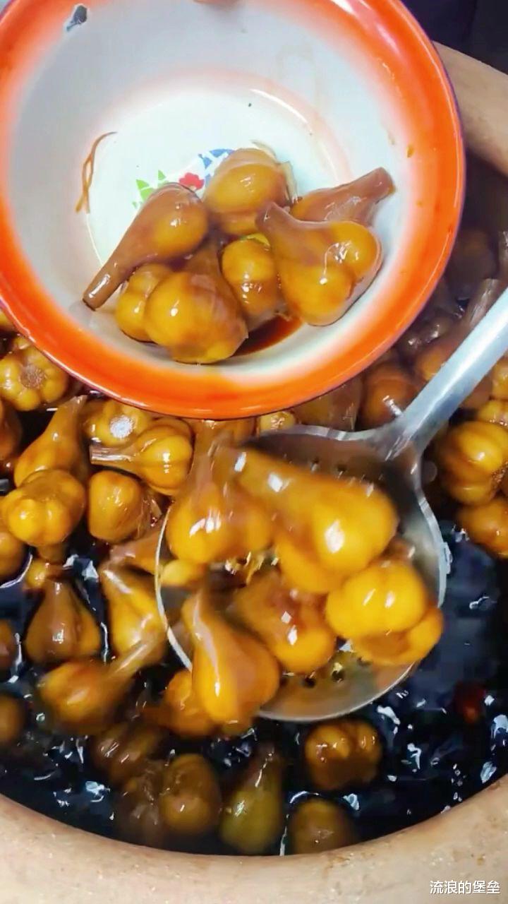第二个就是糖蒜,虽然从小到大都这么叫,实际上东北很少有人做酸甜的糖蒜,大多都是咸口的,咸口的才解腻下饭,酸甜的总觉得差点意思,所以在我们印象里的糖蒜,都是黑色的,咸口的,一咬脆脆的,就连皮都舍不得扔!