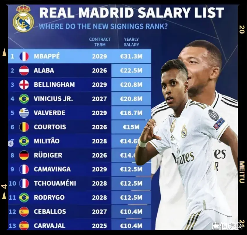 同时维尼修斯和贝林厄姆不出意外的话也将在夏季得到一份满意的续约涨薪合同,据悉他俩的年薪将上调至和姆巴佩一致。用老佛爷的话来说就是一碗水端平,但是这里面绝对不包含罗德里戈。