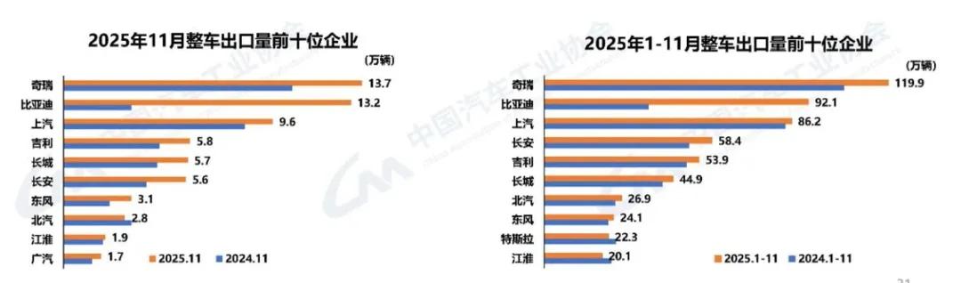 比如说,比亚迪11月总销量超过48万辆,但除去出口的13.2万辆,其国内销量是负增长的;奇瑞除去出口,在国内市场也几乎没有增长。