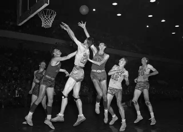 BAA成立时连篮球规则都不完善。首场比赛在多伦多枫叶花园举行,球员用铁丝篮筐和足球比赛,观众不到7000人。但老板们的商业嗅觉精准:他们要求球队必须拥有独立球馆,并引入主客场制——这些规则直接抄了冰球联赛的作业,却意外奠定了职业篮球的商业基因。1947年,费城勇士队拿下首个总冠军,但真正的转折点在1949年:BAA吞并竞争对手NBL,改名NBA,球队从11支扩至17支。这次合并像“篮球界的工业革命”,将分散的小作坊整合成标准化流水线。