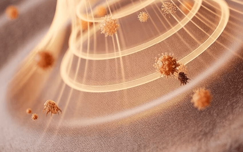 除螨仪哪款好?希亦独家推出了六大硬核黑科技全链路强除螨,通过Deep-C超声波除螨技术,打破细菌与螨虫保护膜,直达纤维根部,做到深层100%强除螨!配合5颗UV-C深紫外灯珠杀菌,彻底破坏螨虫和细菌的DNA结构,其吸附微尘及过敏原高达99.97%,整机过滤效率高达99.99%。