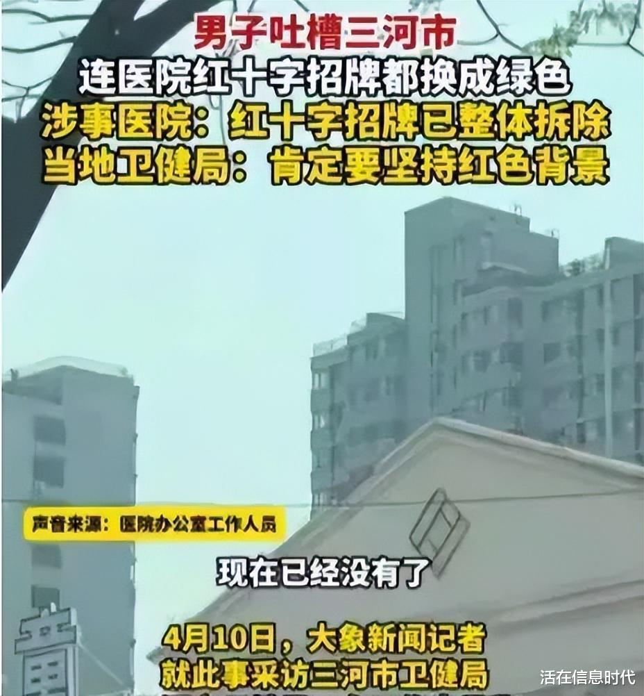 但是在2025年,毗邻北京的河北三河,竟然有人不允许红色在城市中出现。根据三河城管局的要求,在三河市的商家招牌“禁用红蓝黑三色”,以至于在三河,医院的红十字被改成了绿色。