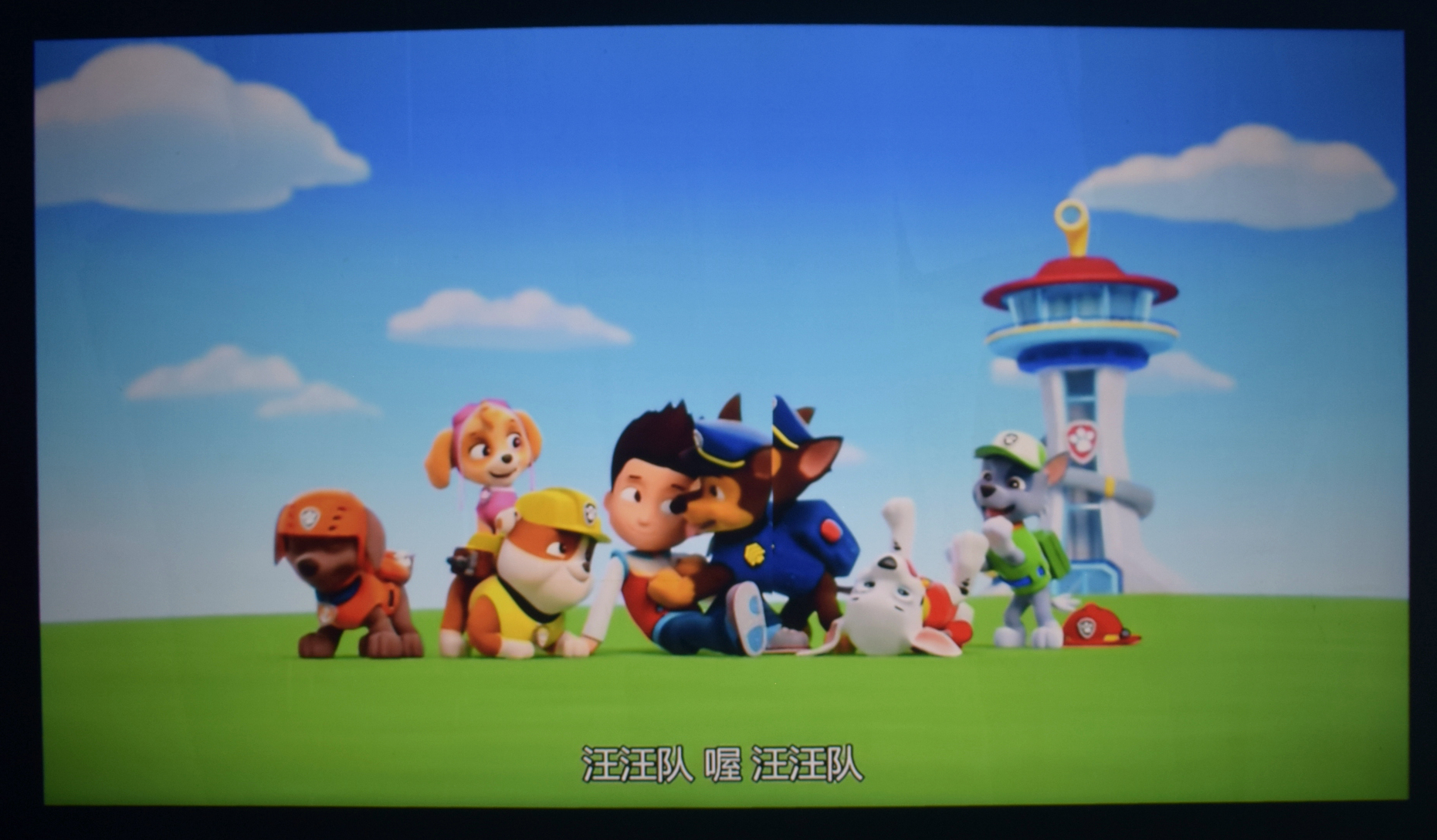 连接手机以后,可以将手机投屏或者是在手机端的播放器选择投屏,更丰富了播放资源。像我家儿子喜欢看迷你特攻队、汪汪队和帮帮龙,都可以用手机投屏到墙上,让他也有了去电影院的感觉。