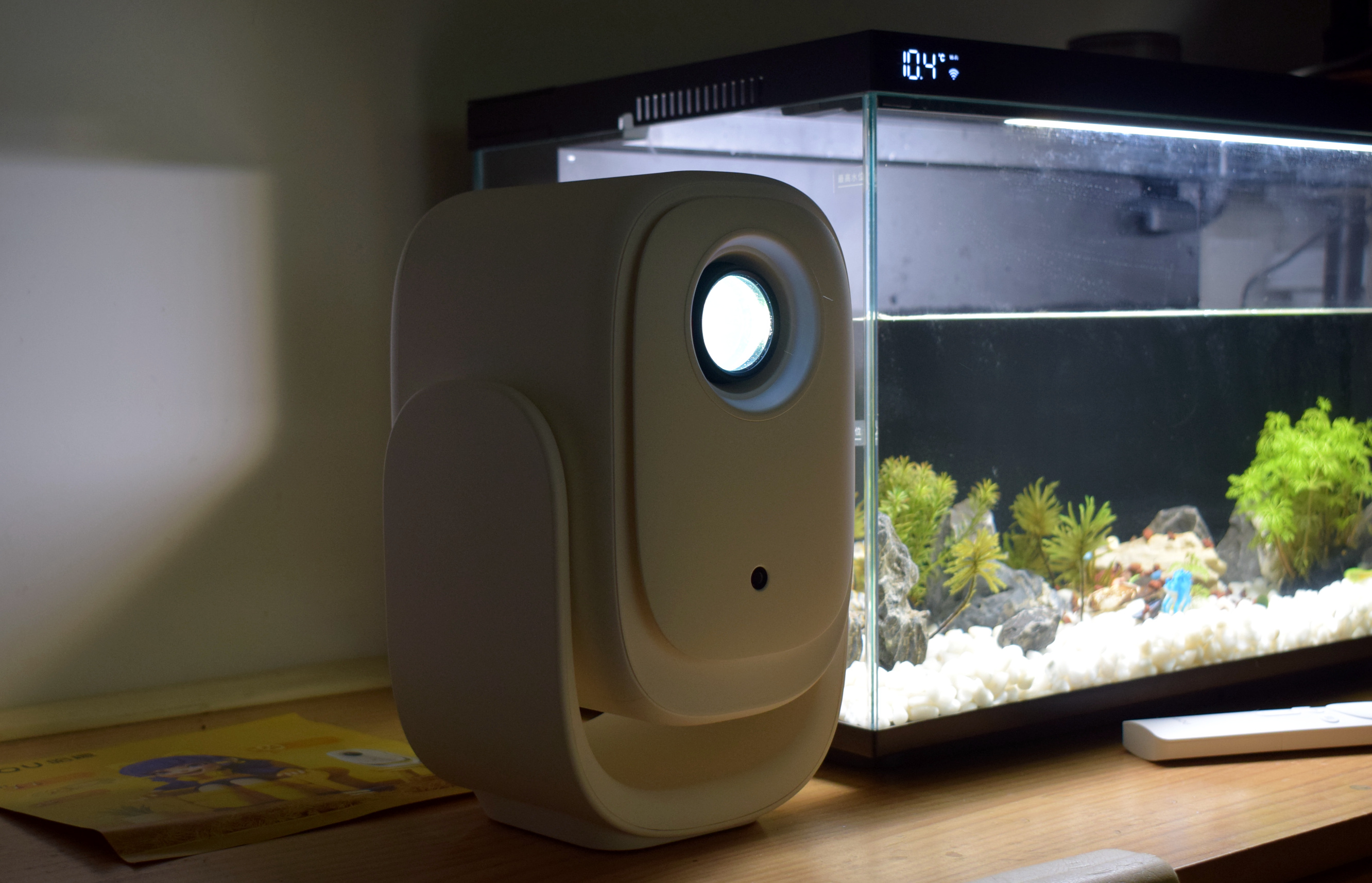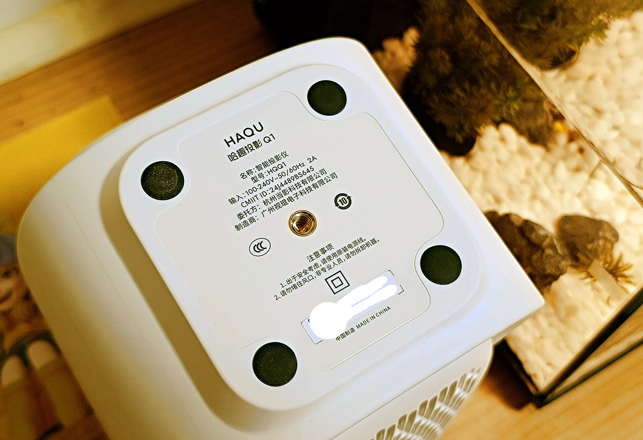 哈趣投影Q1整体造型很圆润,素白的外壳很简约,配上一个大眼睛镜头还是很可爱的。平时不用的时候还能当作家里的玩偶摆件,说不定也会有市场。