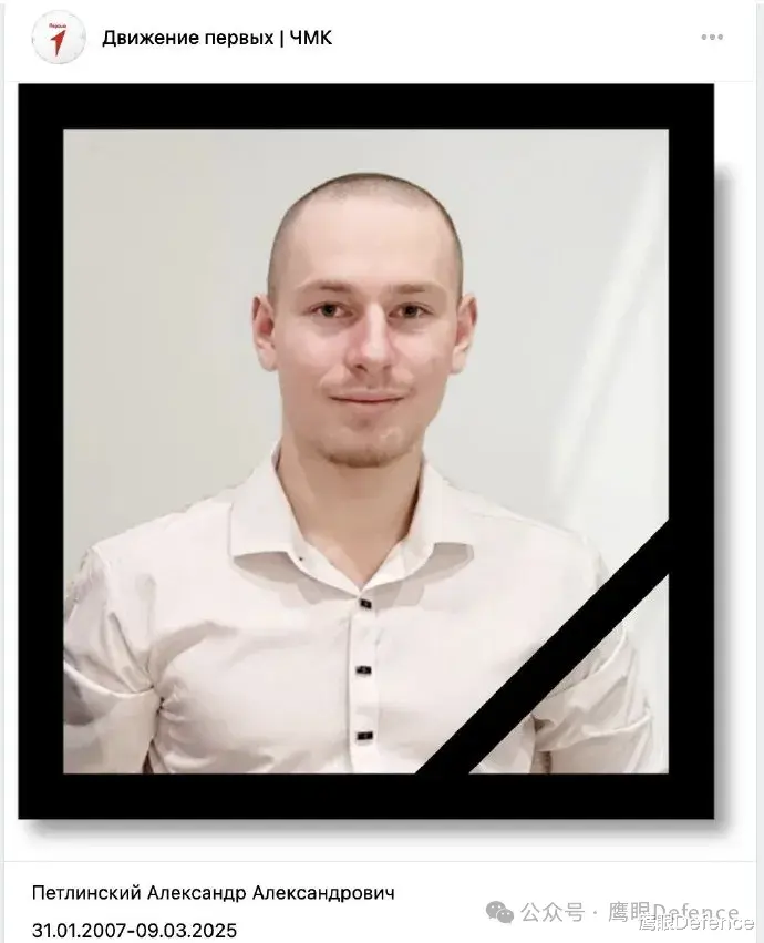 亚历山大·佩特林斯基,车里雅宾斯克医学院的学生,2007年1月31日出生,今年过完18岁生日后加入俄军,3月9日阵亡,他可能是“特别军事行动”中最年轻的阵亡俄军。