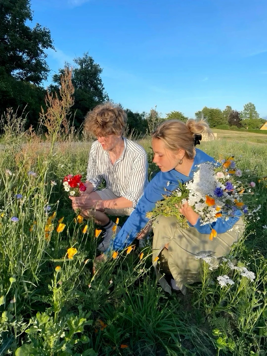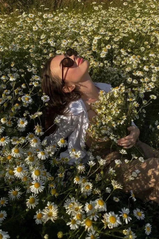 我们置身于繁花似锦的背景前,不妨尝试穿上与花朵背景相同色系的服装。