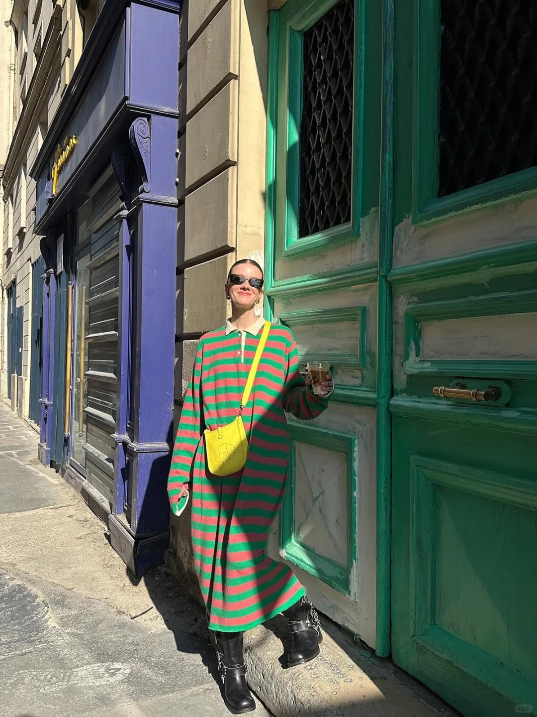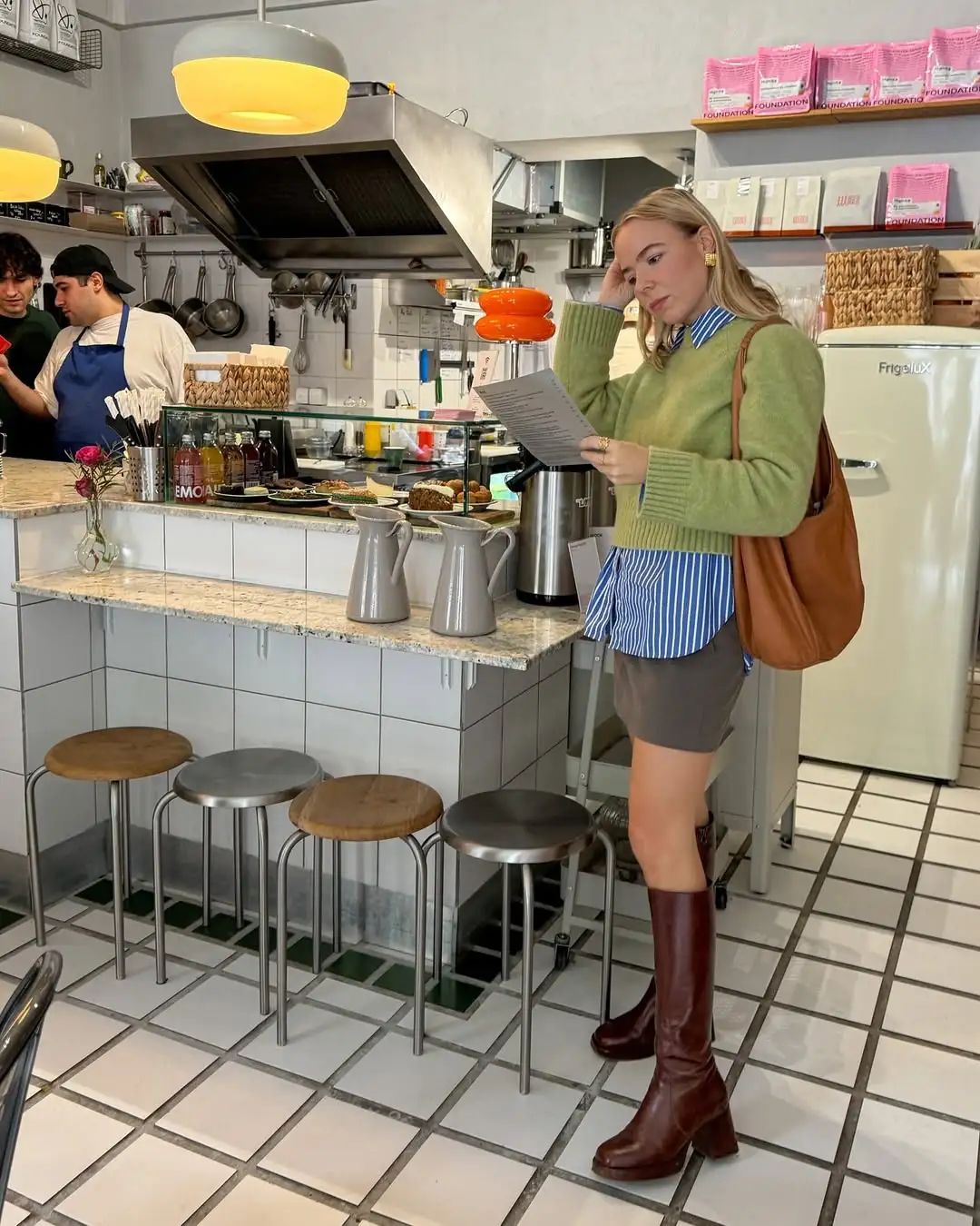 在午后咖啡馆的悠闲时光里,一杯香浓的咖啡,一块精致的甜点,再搭配上这样一身可露丽风格的装扮,仿佛让人穿越到了那个充满艺术气息的旧时光。