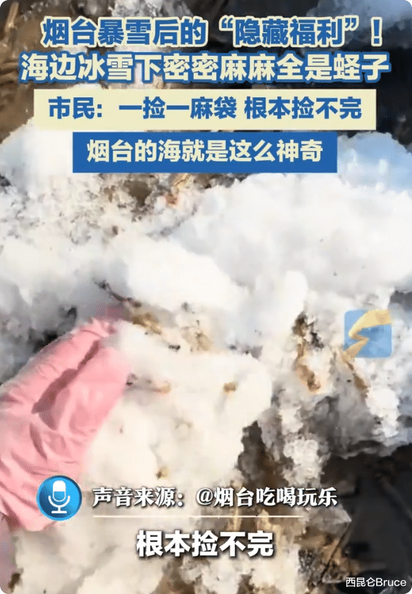 随着捡拾蛏子视频在网络上热传,“#烟台暴雪后蛏子捡不完根本捡不完#”成为热门话题,烟台这座“雪窝子”城市以独特的方式再次出圈。