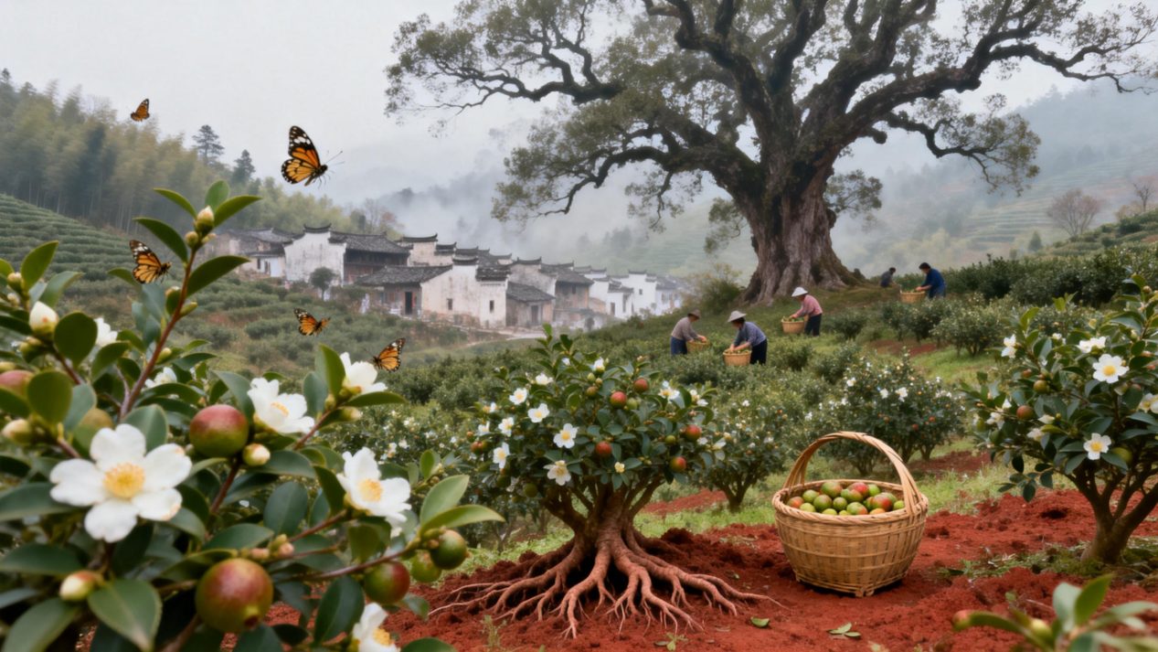 在中国的山水之间,山茶树是一种几乎不需要修饰的存在。它不争阳光,不择沃土,花开冬月,果熟春初。人们所熟知的油茶(Camellia oleifera Abel),正是这株古老树系中最温润的一支。它以树为体、以油为魂,深深扎根于中国南方的山林,与这片土地的气候、文化、信仰乃至人性一起,构成了一个持续数千万年的生命体系。