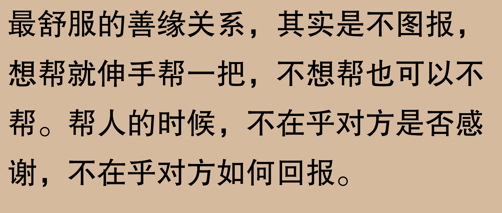 最舒服的善缘关系,其实是不图报,想帮就伸手帮一把,不想帮也可以不帮。帮人的时候,不在乎对方是否感谢,不在乎对方如何回报。