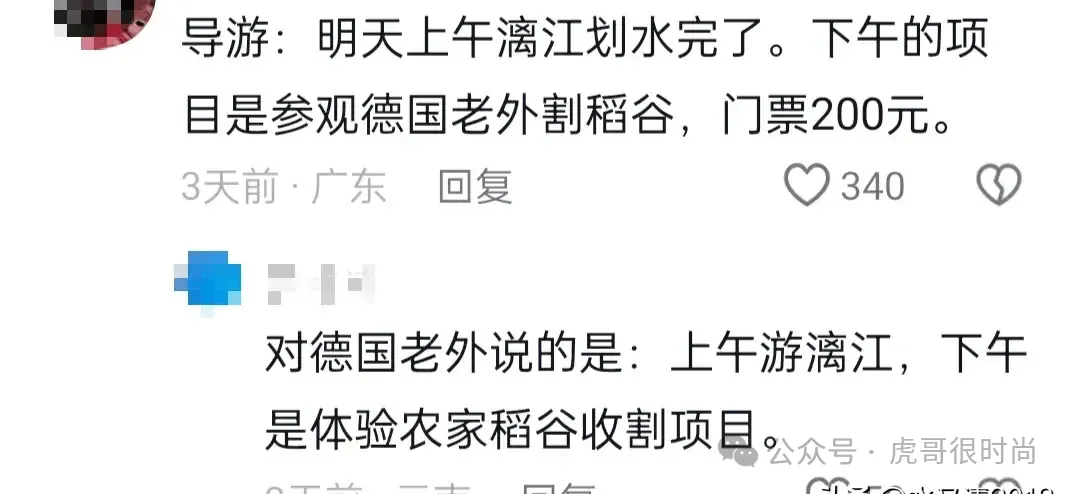 更有网友脑洞大开,猜测这会不会是客栈给游客们量身打造的“特色套餐”——上午游漓江,下午割稻谷,简直就是一个“农耕体验大杂烩”嘛!这安排,简直是“农耕体验市场”的热火朝天啊!